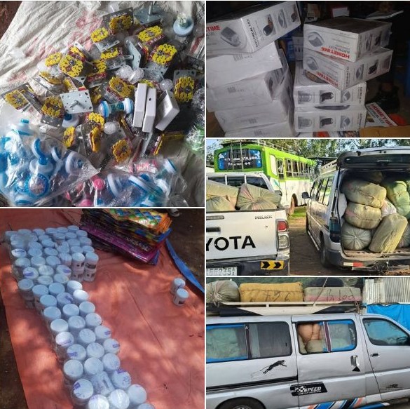 በቁጥጥር ስር ከዋሉት የኮንትሮባንድ እቃዎች መካከል የተለያዩ ማእድናት፣ አልባሳት፣ ኤሌክትሮኒክስ፣ ቡና፣ ጥራጥሬ፣ የተሽከርካሪ መለዋወጫ፣ የመዋቢያ እቃዎች፣ ጫት፣ አደንዛዥ እጾች ፣ መድኃኒት፣ የቁም እንስሳት እና የውጭ ሀገር ገንዘቦች ይገኙበታል፡፡