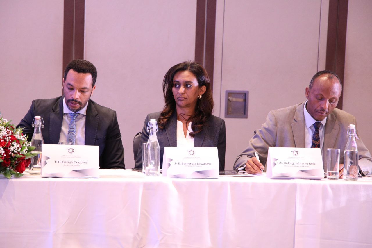 በመድረክ ላይ የውጭ ጉዳይ ሚኒስትር ጌዲዮን ጢሞቲዎስ (ዶ/ር)፣ የኢትዮጵያ የኒውክሌር ኢነርጂ ኮሚሽነር ሳንዶካን ደበበ፣ የዓለም አቀፍ አቶሚክ ኢነርጂ ኤጀንሲ ምክትል ዋና ዳይሬክተር ሚካኤል ቹዳኮቭና የባለድርሻ ተቋማት ከፍተኛ የሥራ ኃላፊዎች ተገኝተዋል።