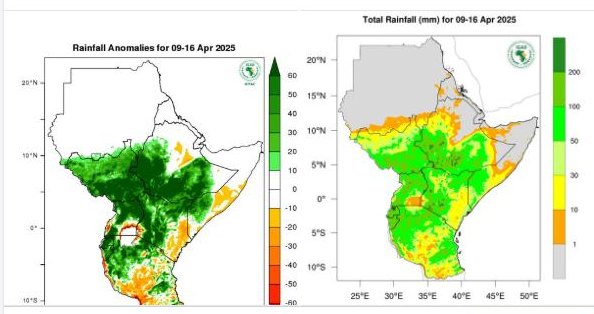 በዚህም መሰረት የዝናብ ስርጭቱ በደቡብና ማእከላዊ ኢትዮጵያ፣ደቡብ ሱዳን፣ኡጋንዳ፣ሩዋንዳ፣ ብሩንዲ፣የታንዛኒያ ምእራባዊ ክፍል፣በኬኒያ በርካታ አካባቢዎች እና በሶማሊያ ደቡባዊ ክፍል ከመደበኛው ከፍ ያለ ዝናብ ይኖራል።