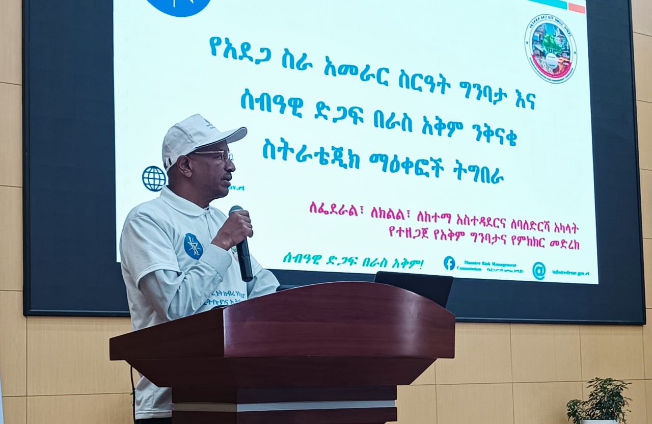 የአደጋ ስጋት አመራር ኮሚሽን የሰብዓዊ ድጋፍ በራስ አቅም ንቅናቄ ስትራቴጂክ ማዕቀፎች ትግበራ ላይ ለፌደራል፣ ለክልልና ለከተማ አስተዳደሮች ባለድርሻ አካላት የአቅም ግንባታ የምክክር መድረክ እያካሄደ ነው።