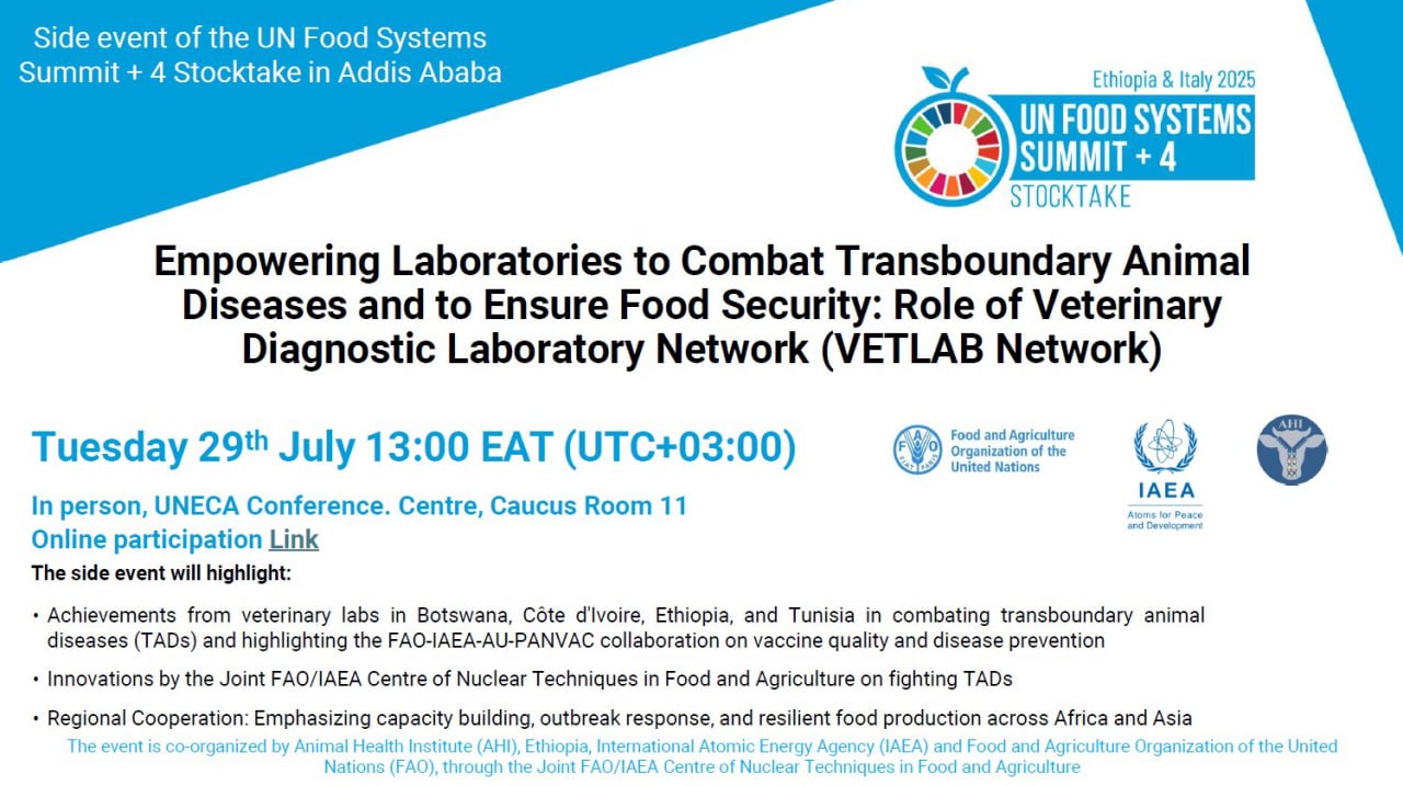 ሁነቱ የዓለም አቀፉ አቶሚክ ኃይል ኤጀንሲ(አይኤኢኤ) የብሔራዊ እንስሳት ጤና ምርመራ ቤተ ሙከራዎች ኔትወርክ(ቬትላብ ኔትወርክ) እንስሳት እና የጀርባ አጥንት ካላቸው እንስሳት ወደ ሰው የሚተላለፉ ድንበር ተሻጋሪ በሽታዎች በመለየት እና በመከላከል እንዲሁም የምግብ ደህንነትን ለማሻሻል ያላቸው ሚና ውይይት እንደሚደረግበት ከኢኒስቲትዩቱ የተገኘው መረጃ ያመለክታል።