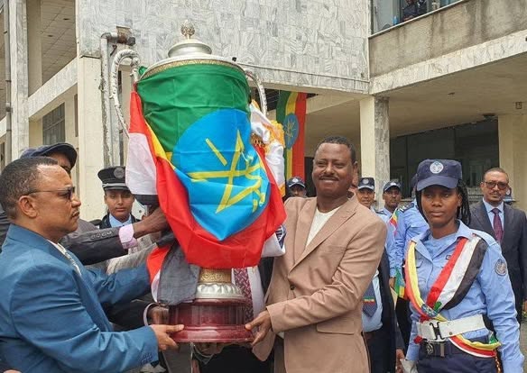 ዋንጫንው የኦሮሚያ ክልል ፖሊስ ኮሚሽን ኮሚሽነር ሌተናል ጄኔራል ድሪባ መኮንን ከአዲስ አበባ ፖሊስ ጠቅላይ መምሪያ አዛዥ ጌቱ አርጋው እጅ ተረክበዋል።