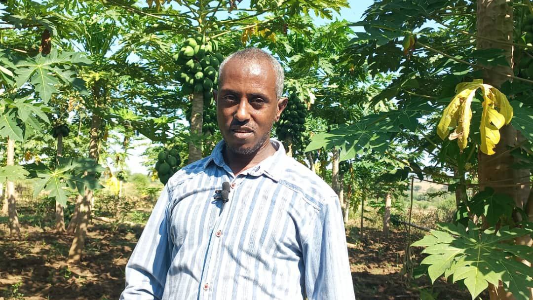 ቋሚ የፍራፍሬ ችግኞችን ከግብርና በማግኘቴ ፓፓያና ማንጎ እያለማሁ ነው ያሉት አርሶአደሩ ፓፓያው ደስ በሚያሰኝ መልኩ ማፍራት መጀመሩን ተናግረዋል።