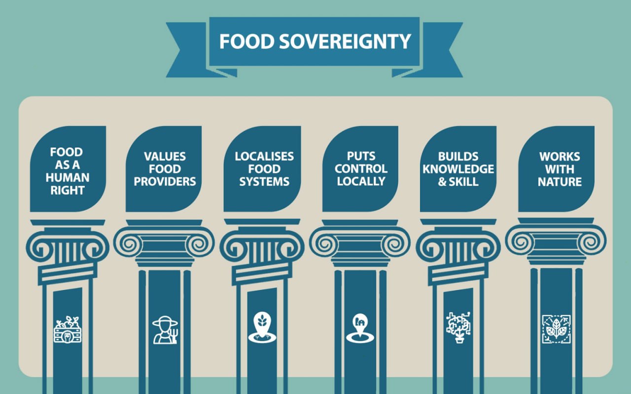 የምግብ ሉዓላዊነት ቁልፍ ጽንሰ ሀሳቦች ሀገር በቀል ቁጥጥር፣ ዘላቂ ስነ-ምህዳር መገንባትና የአርሶ አደሩን መብት ማስጠበቅ ነው።