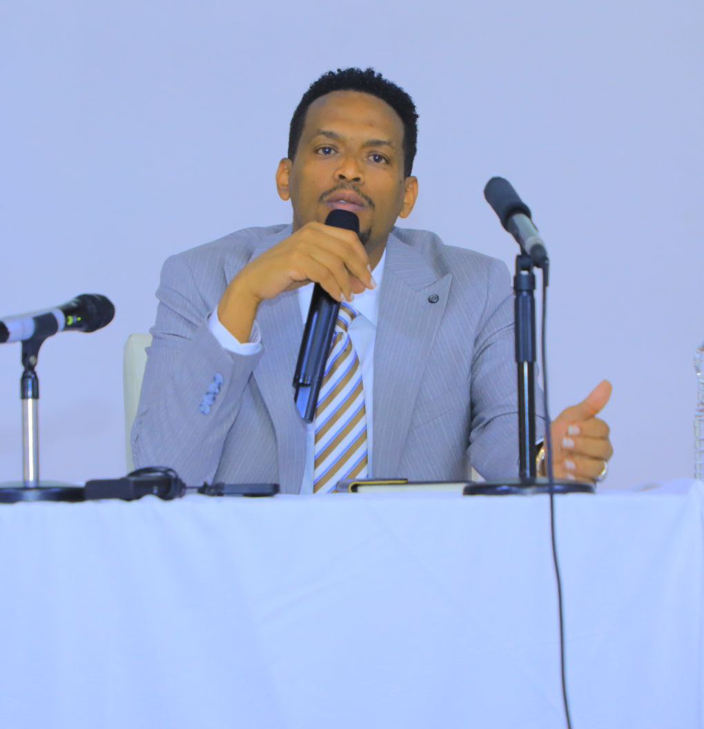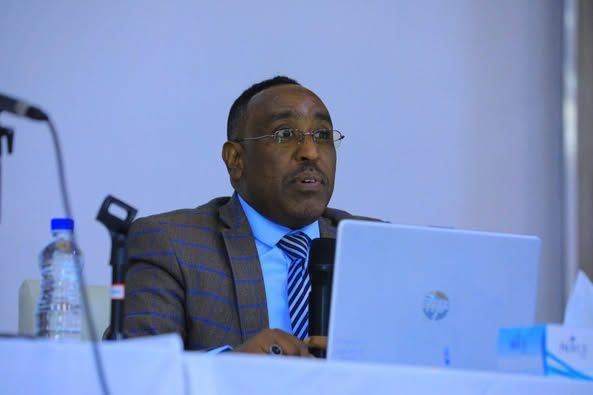 በግምግማው መድረክ ላይ የክልሉ የፕላን ኮሚሽን ኮሚሽነር አቶ ኢብሳ ኢብራሂም የዘጠኝ ወራት የካፒታል ፕሮጀክቶች የስራ አፈፃፀም ሪፖርት በማቅረብ ላይ ናቸው።