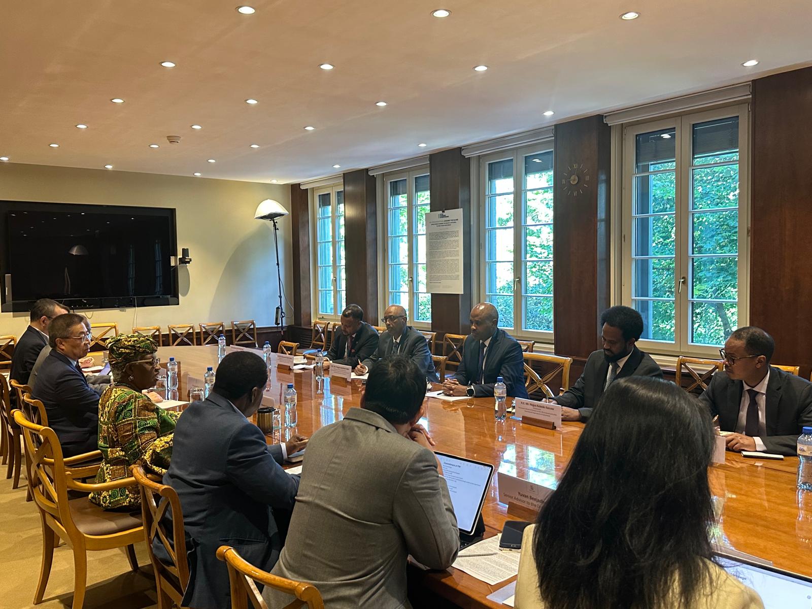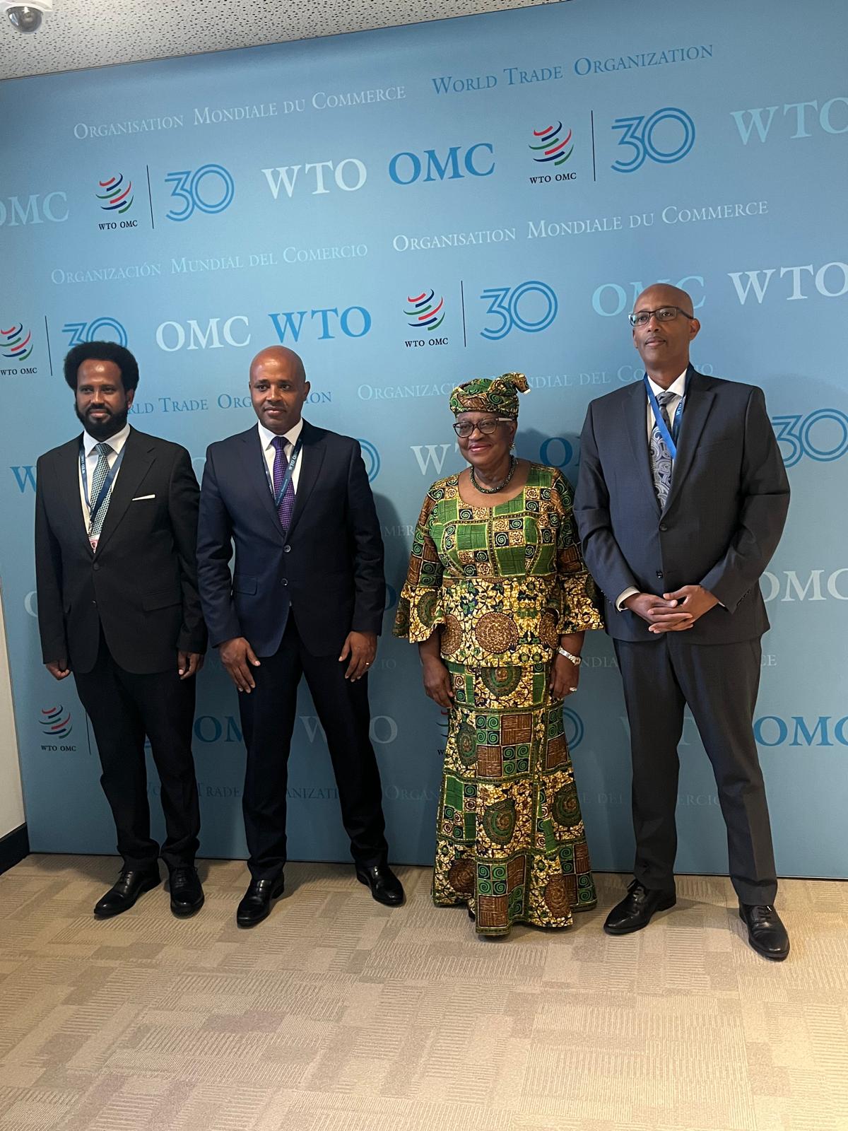ከልኡክ ቡድናቸው ጋር በድርጅቱ ጠቅላላ ጉባኤ ላይ ለመሳተፍ ጄኔቫ የሚገኙት ሚኒስትር ዴኤታው ከጉባኤው ጎን ለጎን ከዓለም ንግድ ድርጅት ዋና ዳይሬክተር ንጎዚ ኦኮንጆ ኢዋላ(ዶ/ር) ጋር ተወያይተዋል።
