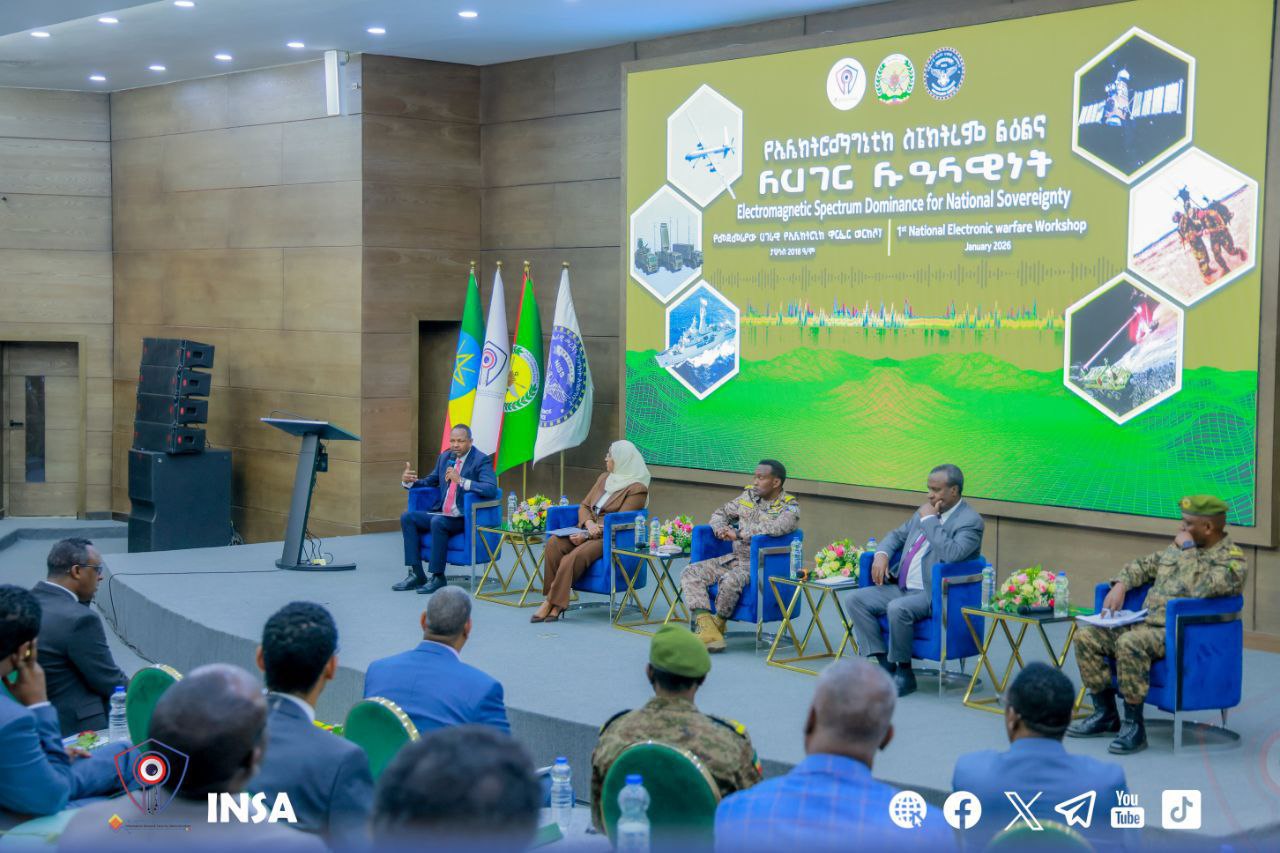 “የኤሌክትሮ ማግኔቲክ ስፔክትረም ልዕልና ለሀገር ሉዓላዊነት” በሚል መሪ ሃሳብ በሀገር አቀፍ ደረጃ የመጀመሪያ የሆነ የኤሌክትሮኒክ ዋርፌር አውደ ጥናት በኢንፎርሜሽን መረብ ደህንነት አስተዳደር (ኢመደአ) ዋና መስሪያ ቤት ዛሬ ተካሂዷል፡፡
